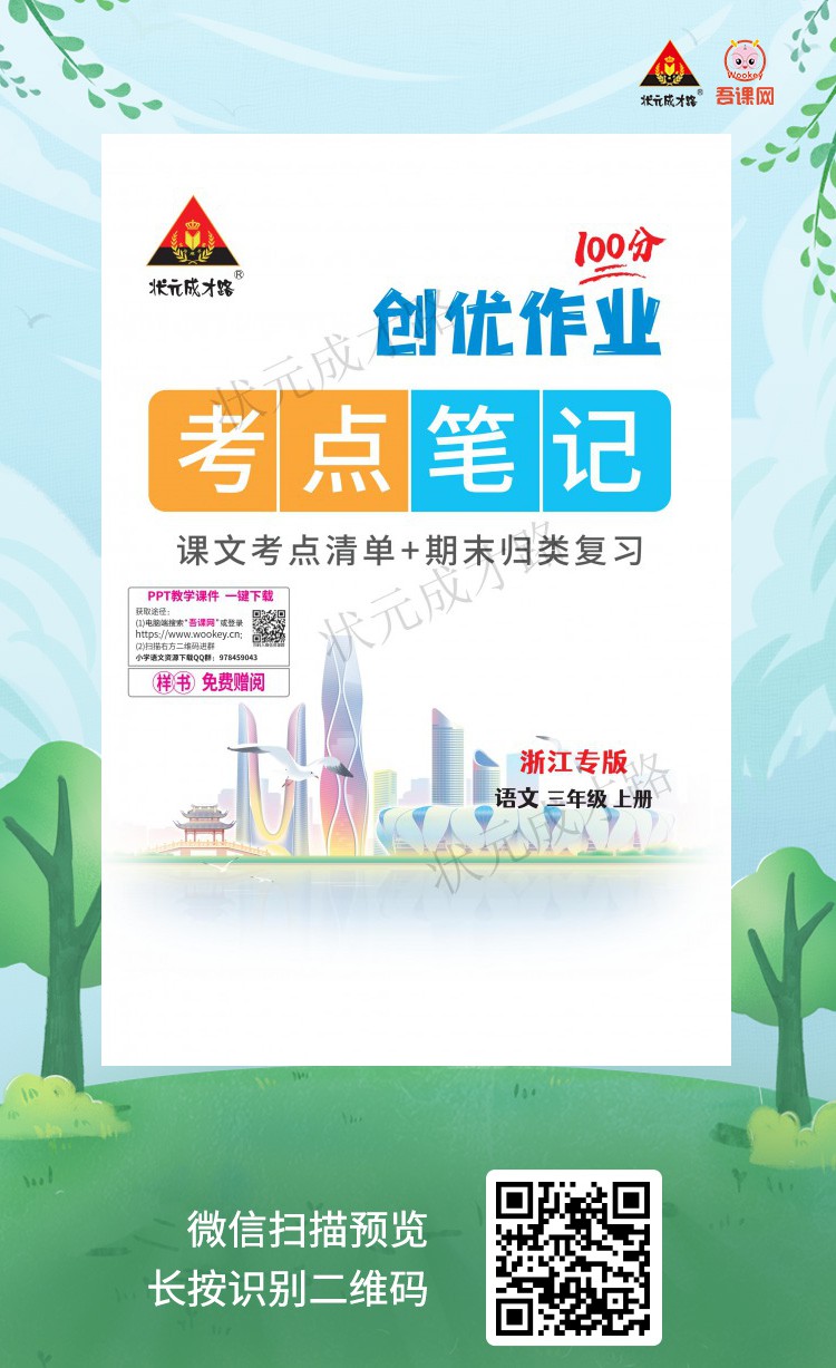 (浙江)统编版三年级语文上册《创优作业100分 考点笔记》教用