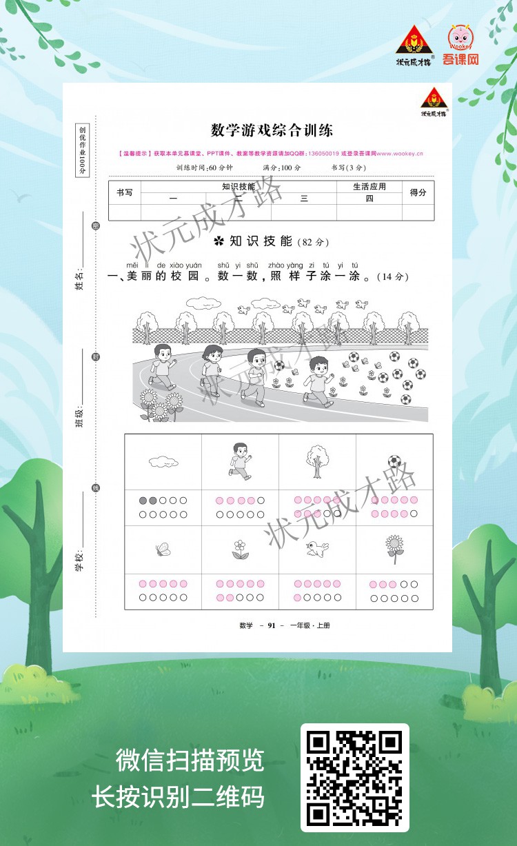 (浙江)人教版一年级数学上册《创优作业100分 试卷》教用