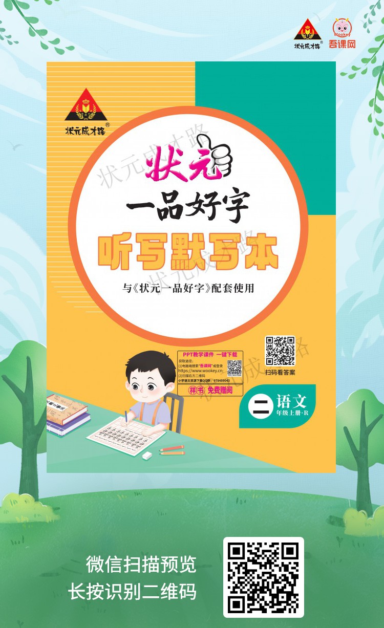 统编版二年级语文上册《状元一品好字 听写默写本》教用