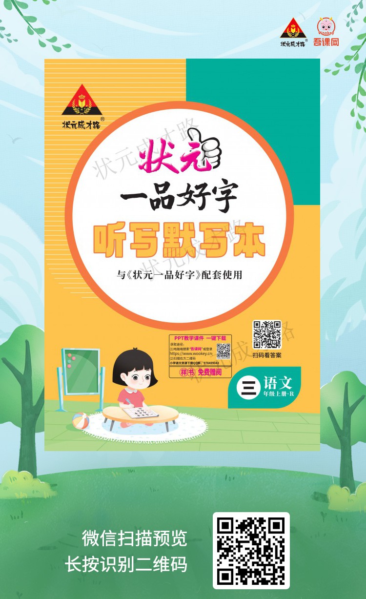 统编版三年级语文上册《状元一品好字 听写默写本》教用