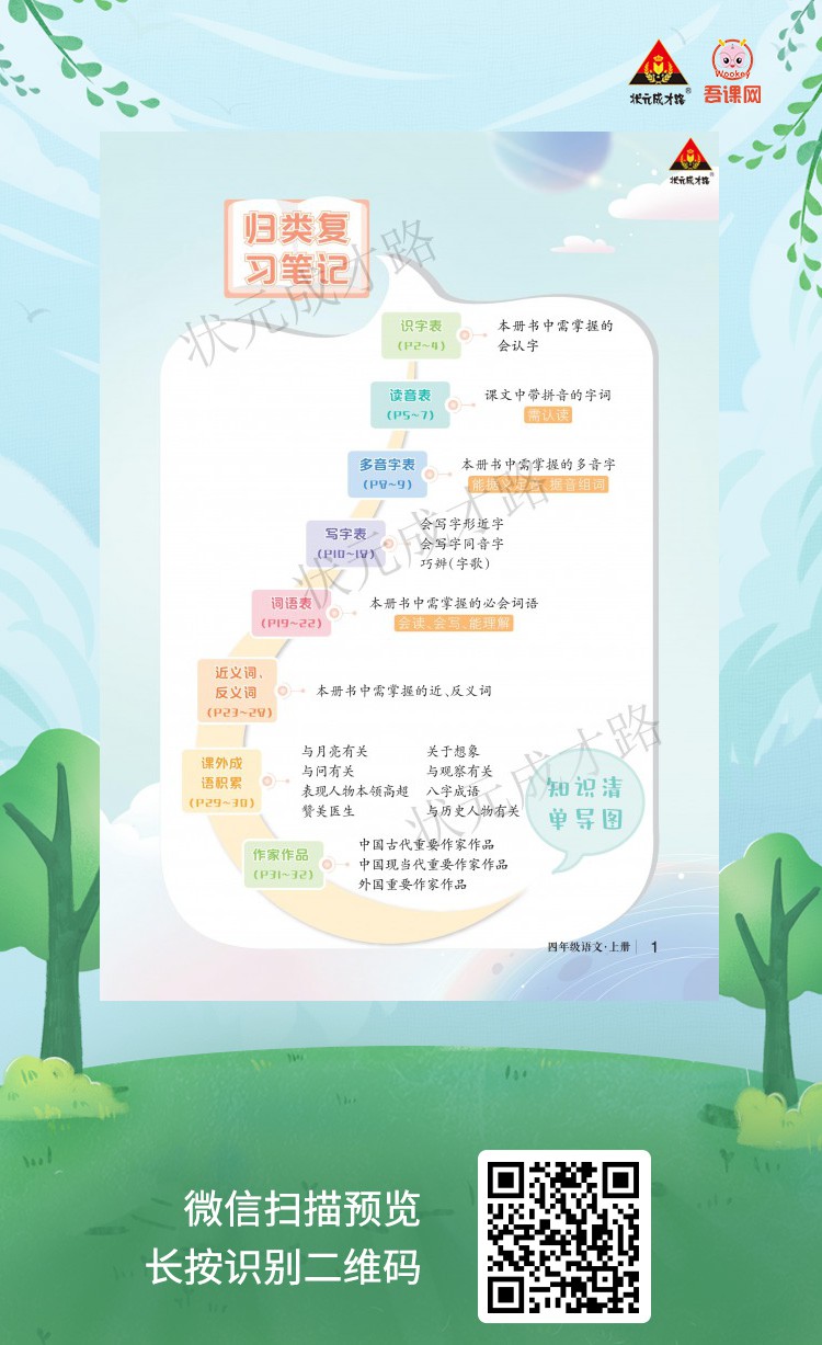 统编版四年级语文上册《状元语文笔记》识字表
