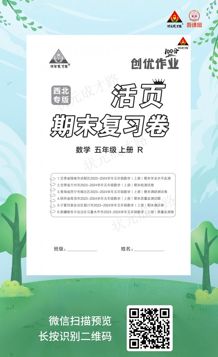 (西北)人教版五年级数学上册《创优作业100分 真题卷》学用