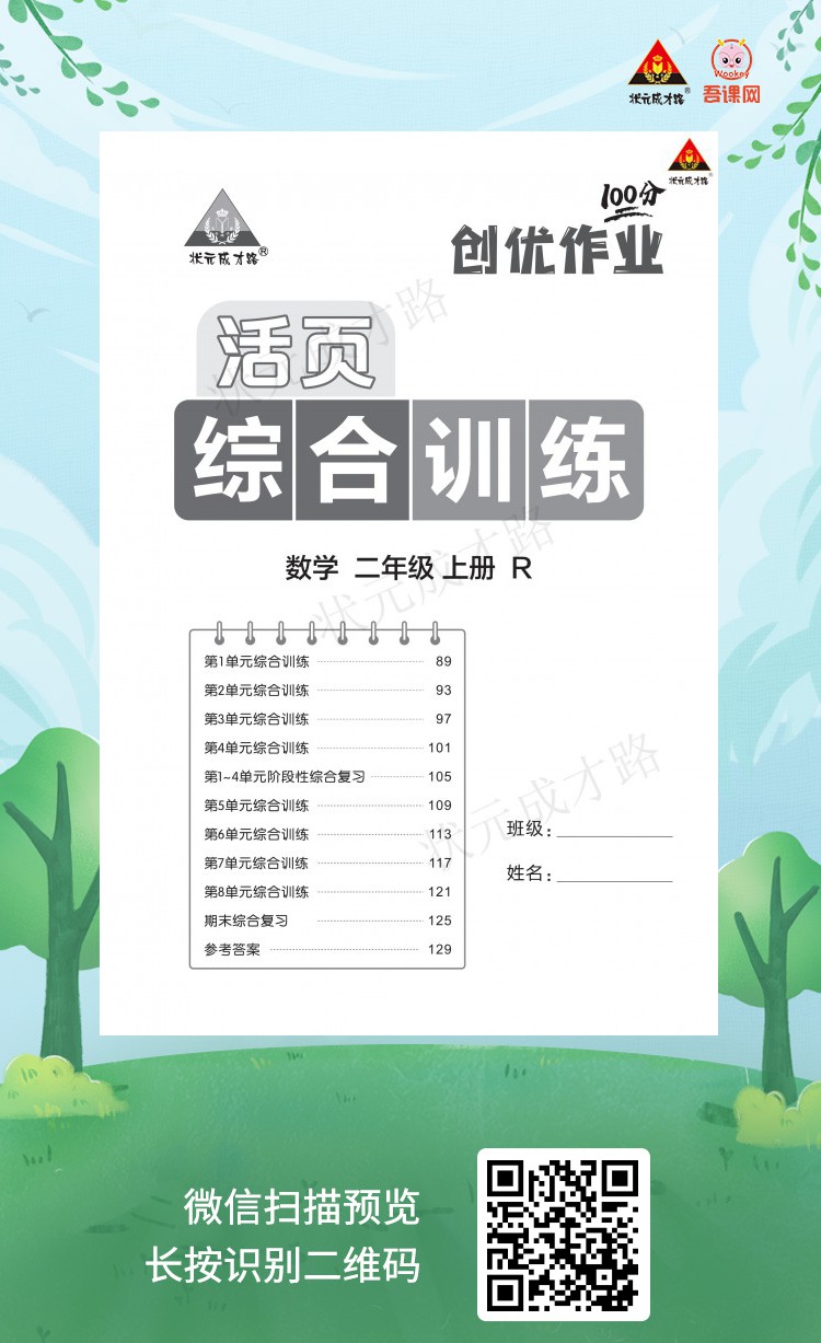 (西北)人教版二年级数学上册《创优作业100分 试卷》学用