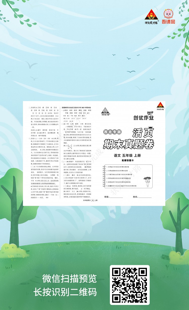 (西北)统编版五年级语文上册《创优作业100分 真题卷》学用