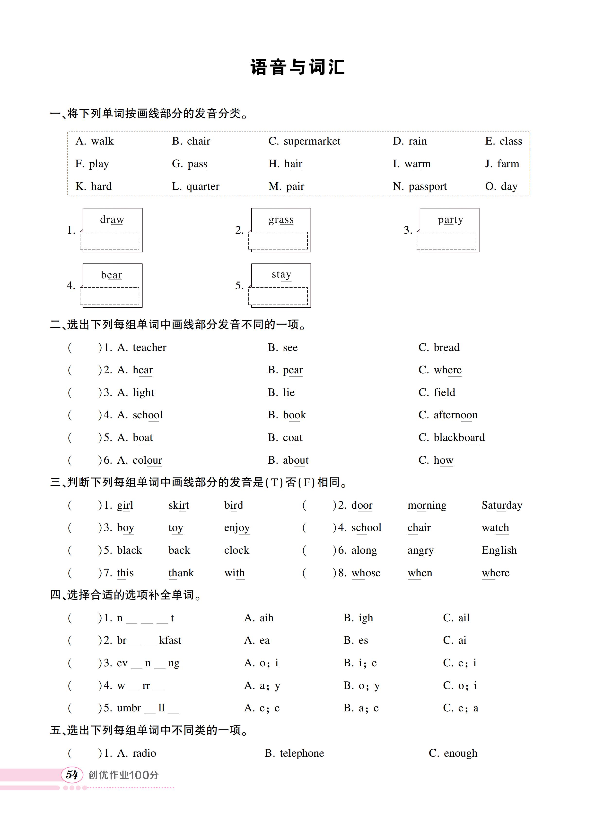 湘少五英词汇练习