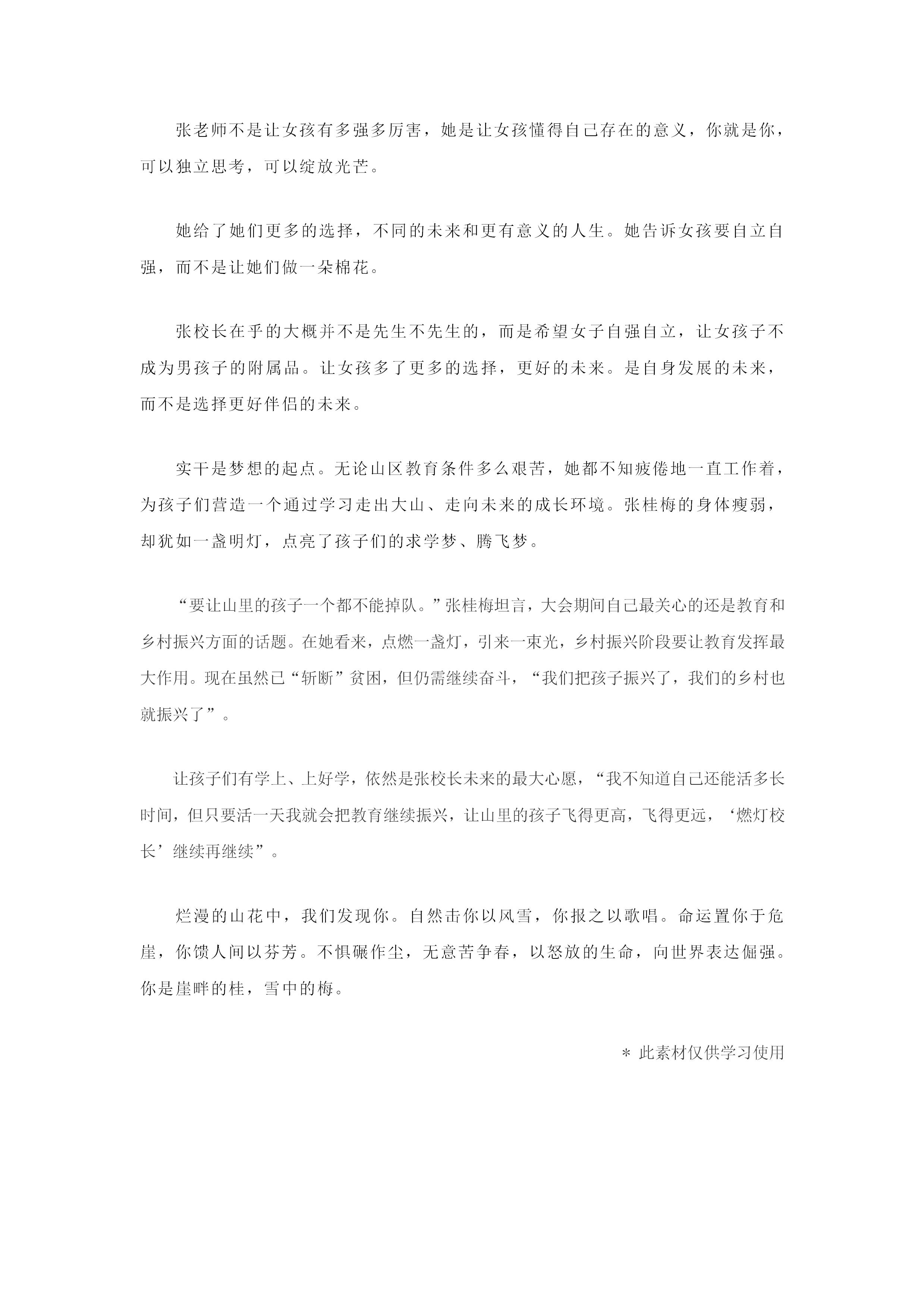 张桂梅老师精选素材短篇5篇